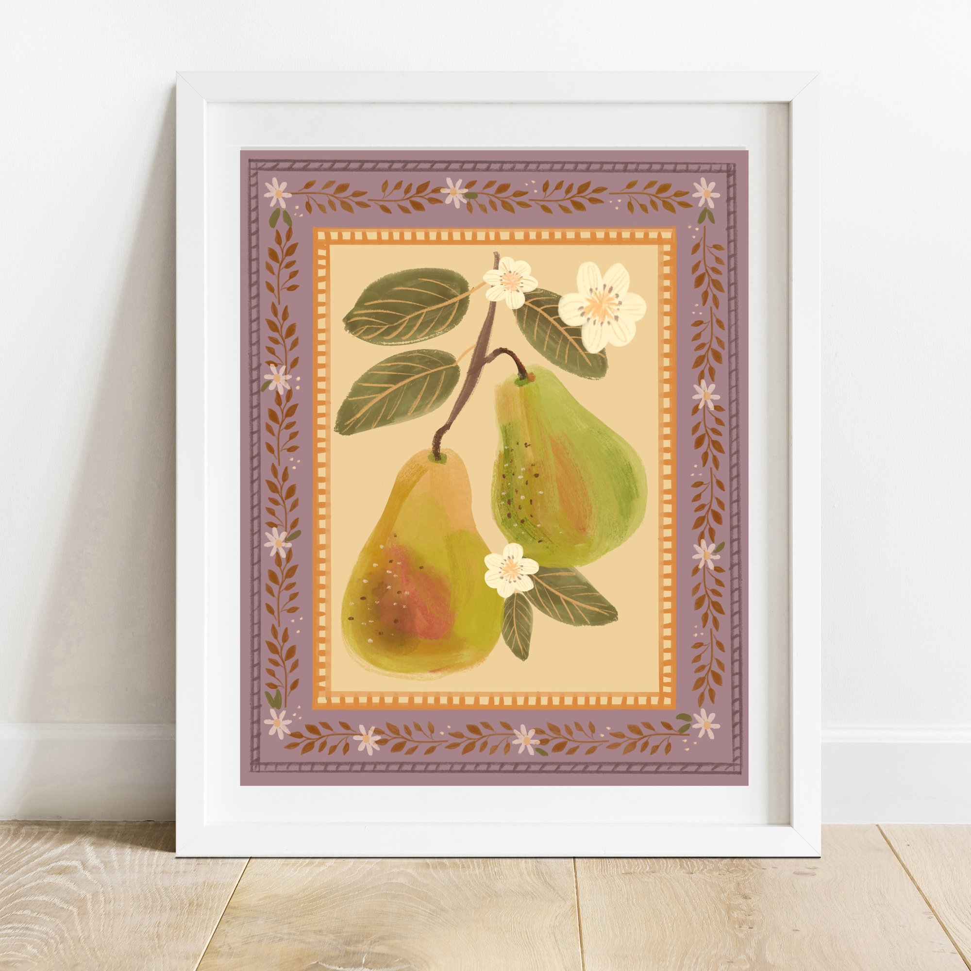Pears With Floral Border Print